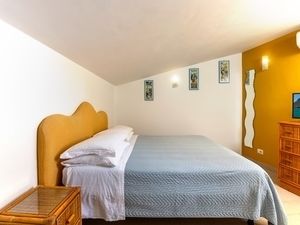 Dal soggiorno si accede al piano superiore dai 14 scalini dove c'è una cucina attrezzata con boiler, tostapane, forno, frigo con freezer e terrazzino di 5 metri quadri con vista sul Golfo di Salerno.